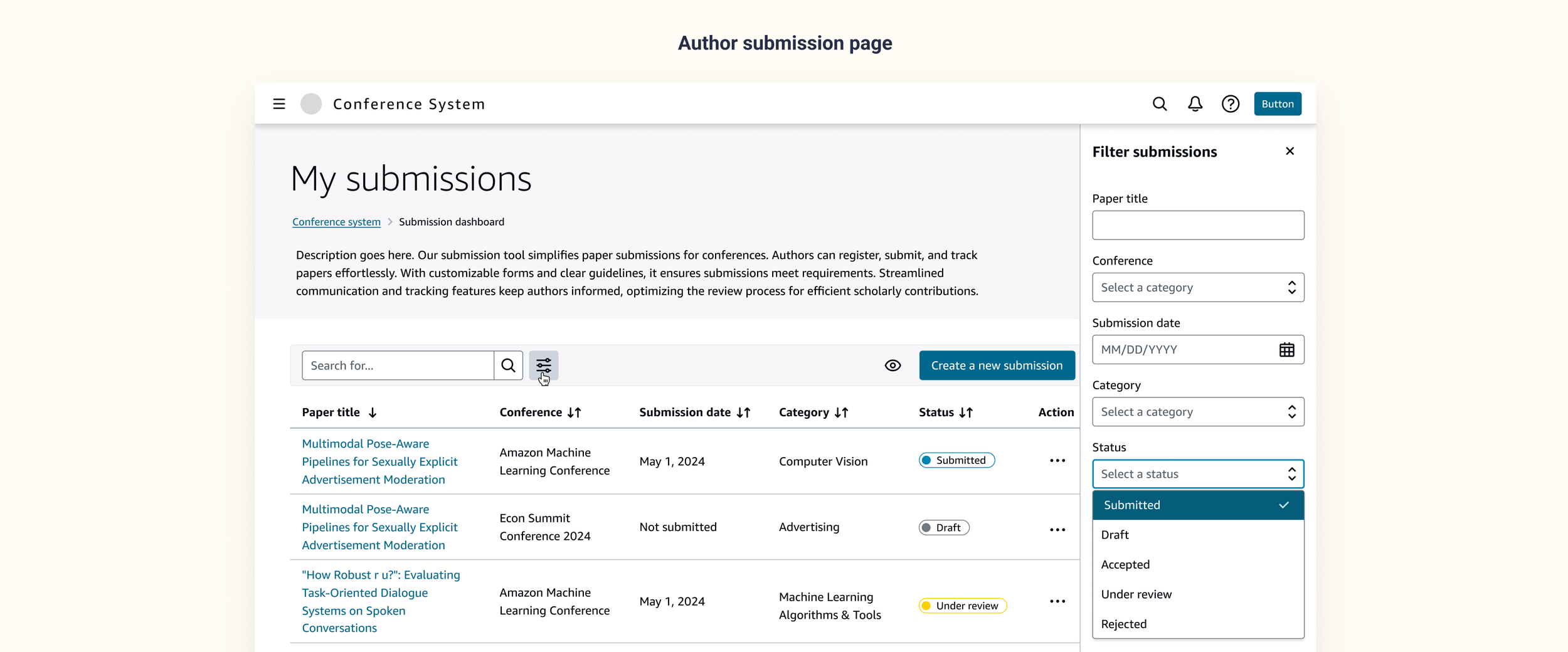 Author Hub: A centralized dashboard where authors can track submissions across multiple conferences in real-time.